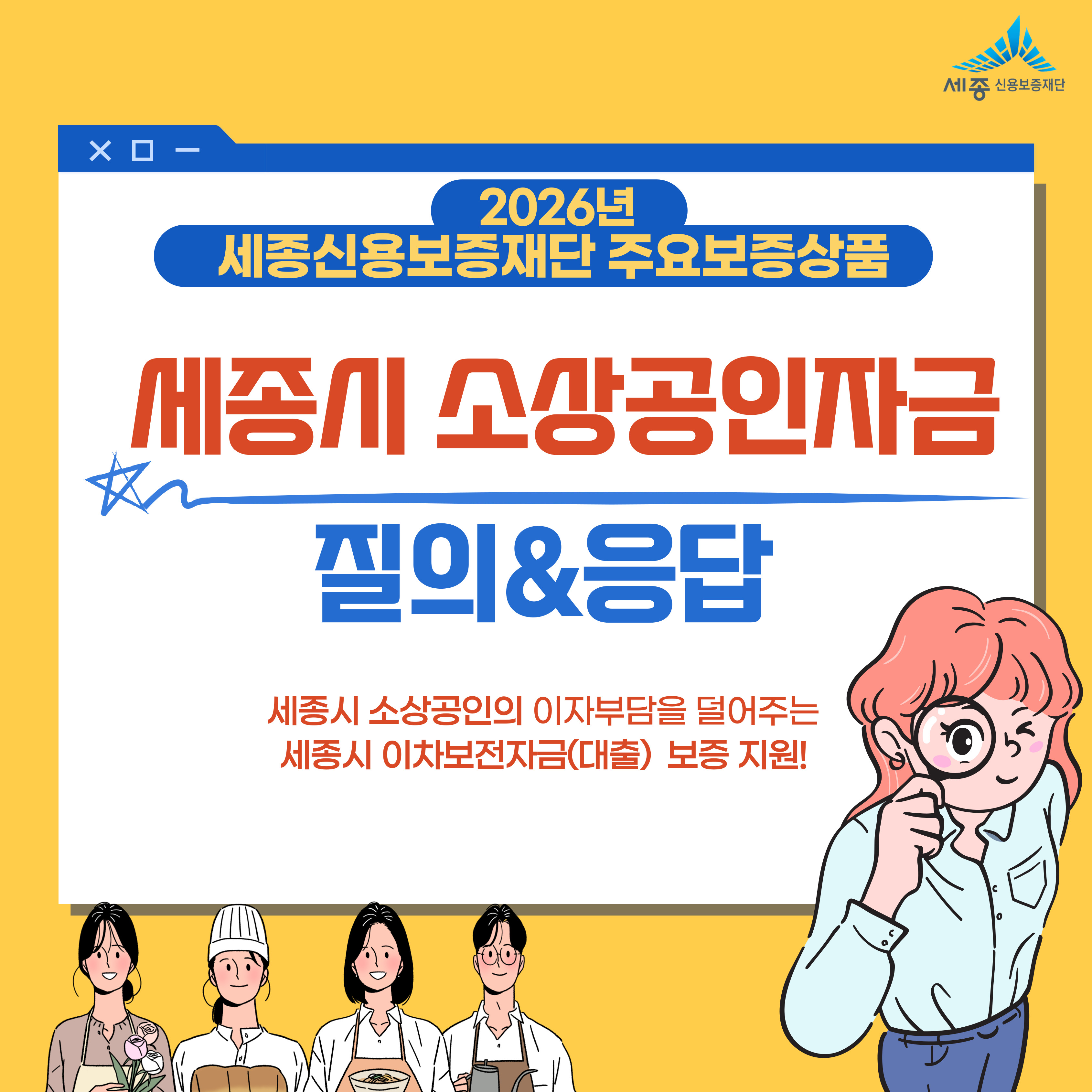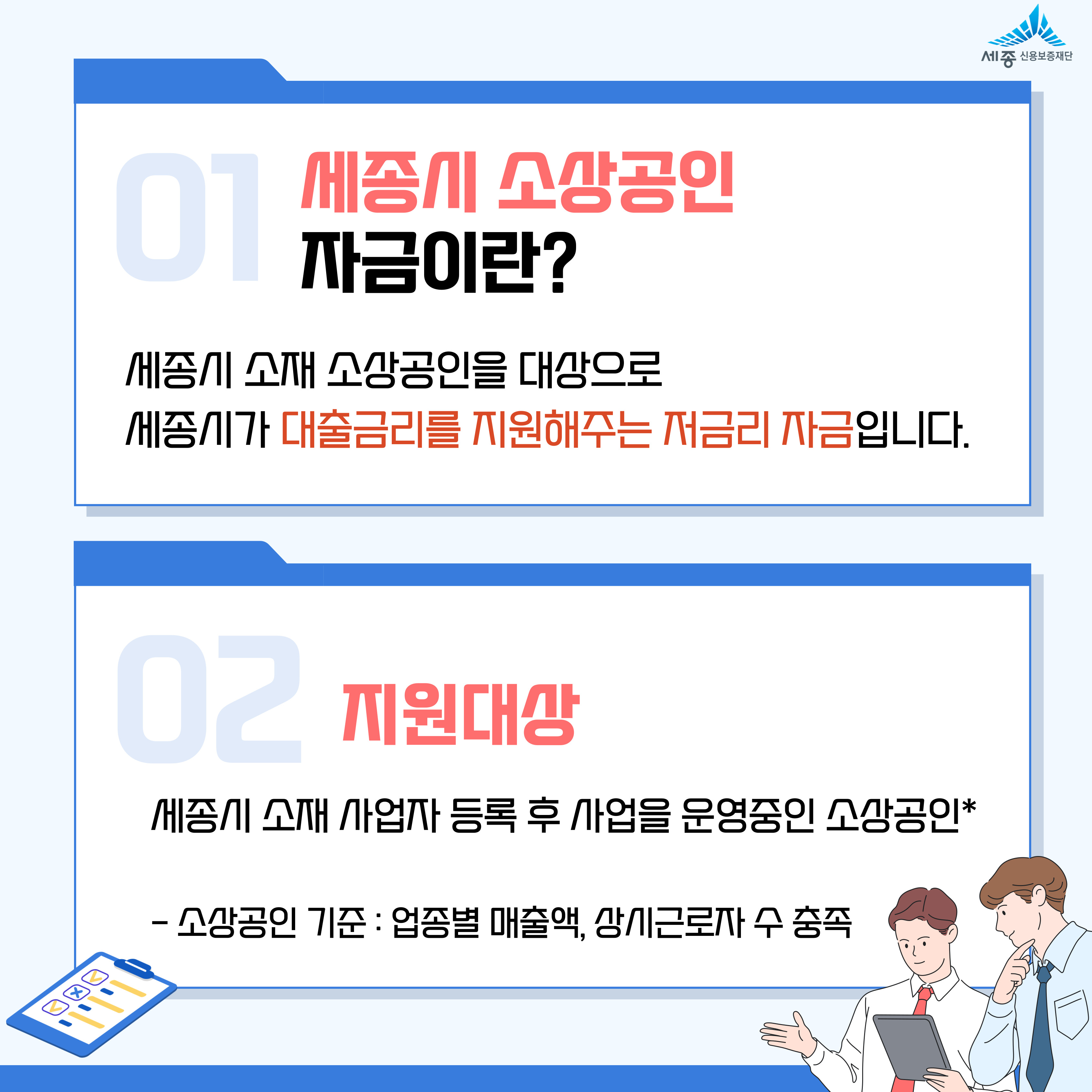 공지사항 2026년 세종시 소상공인자금 안내(질의&응답) 작성자 관리자 작성일 2026.01.05 조회수 676 2026년 세종시 소상공인자금 접수일(1분기 - 지원규모 100억원) 1월 12일(월) 09:00 ~ 선착순 지원 첨부파일 001.jpg (1.1 MB) 001.jpg (216.6 KB) 002.jpg (759.5 KB) 003.jpg (727.9 KB) 004.jpg (1.0 MB) 005.jpg (843.0 KB) 006.jpg (1.1 MB) 007.jpg (1.0 MB) 008.jpg (1.3 MB) 009.jpg (882.0 KB) 다운로드.zip 목록