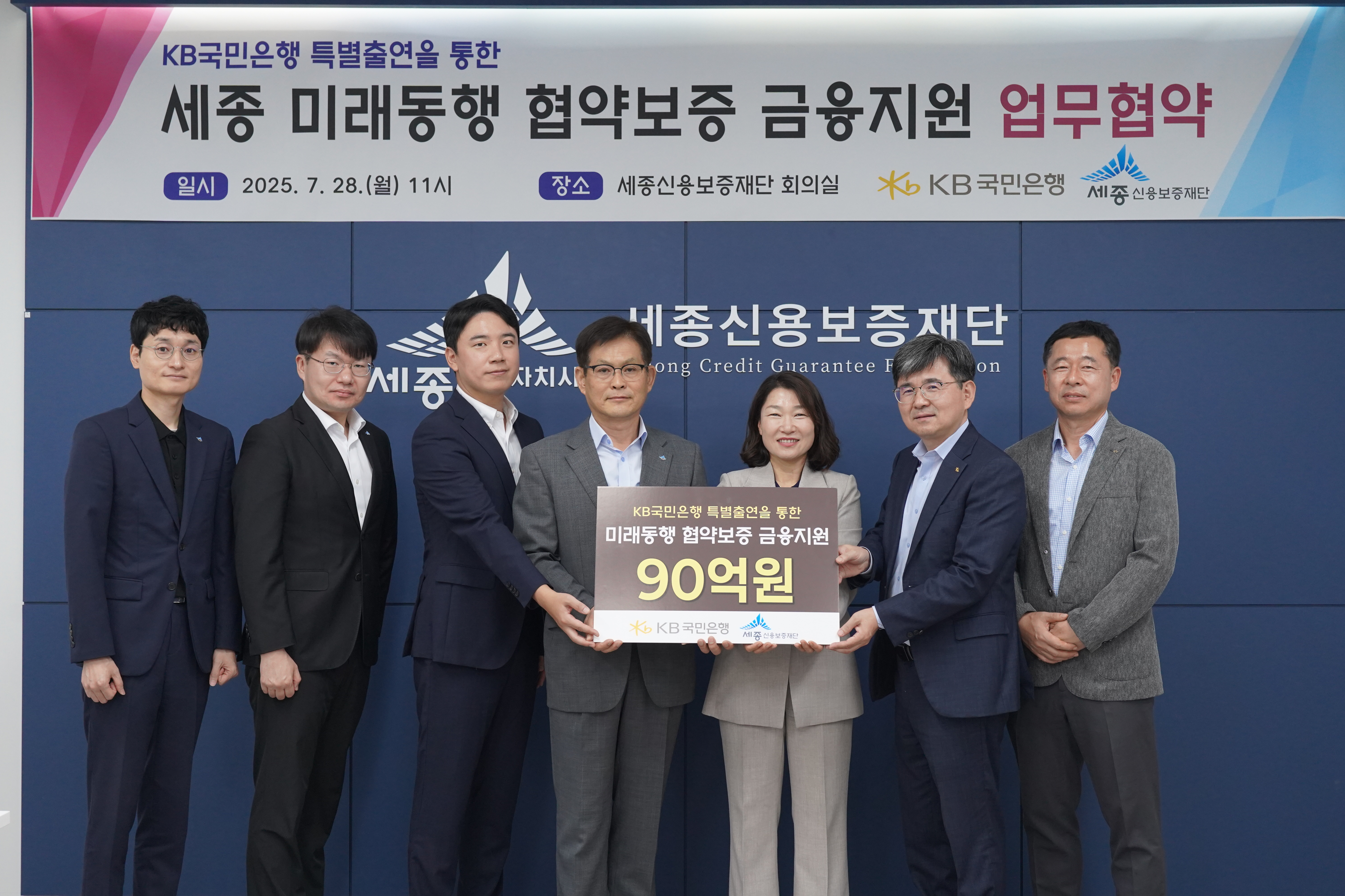 포토뉴스 세종신용보증재단-국민은행,‘미래동행 협약보증’업무협약 체결 작성자 관리자 작성일 2025.07.28 조회수 314 일 시 : 2025. 7. 28. (월), 11시 장 소 : 세종신용보증재단 회의실 세종신용보증재단은 국민은행과 미래동행 업무협약을 체결했습니다. 목록