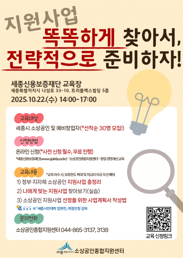 검색 진행상태 대기 접수중 접수마감 진행중 완료 전체 제목 내용 검색 전체 15건 현재페이지 1/2 접수마감 제10차 소상공인 점프업 아카데미(지원사업) 모집기간 2025.09.11 ~ 2025.10.16 교육기간 2025.10.22 14:00 ~ 2025.10.22 17:00 완료 제9차 소상공인 점프업 아카데미(세무) 모집기간 2025.08.27 ~ 2025.09.17 교육기간 2025.09.18 14:00 ~ 2025.09.18 17:00 완료 제8차 소상공인 점프업 아카데미(브랜드 역량강화 AI콘텐츠제작 교육) 모집기간 2025.08.04 ~ 2025.08.18 교육기간 2025.09.10 00:00 ~ 2025.09.10 00:00 완료 제7차 소상공인 점프업 아카데미(노무) 모집기간 2025.08.04 ~ 2025.08.26 교육기간 2025.08.27 14:00 ~ 2025.08.27 17:00 완료 제6차 소상공인 점프업 아카데미(희망리턴패키지) 모집기간 2025.07.09 ~ 2025.07.25 교육기간 2025.07.30 10:00 ~ 2025.07.31 17:00 완료 제5차 소상공인 점프업 아카데미(고객응대) 모집기간 2025.07.02 ~ 2025.07.10 교육기간 2025.07.23 14:00 ~ 2025.07.23 17:00 완료 제4차 소상공인 점프업 아카데미(SNS 마케팅) 모집기간 2025.05.14 ~ 2025.06.24 교육기간 2025.06.25 14:00 ~ 2025.06.25 17:00 완료 제3차 소상공인 점프업 아카데미(사업계획, 법률) 모집기간 2025.04.17 ~ 2025.05.13 교육기간 2025.05.14 13:00 ~ 2025.05.14 17:10 완료 제2차 소상공인 점프업 아카데미(세무) 모집기간 2025.03.18 ~ 2025.04.08 교육기간 2025.04.09 14:00 ~ 2025.04.09 17:00 완료 제1차 소상공인 점프업 아카데미(온라인 마케팅) 모집기간 2025.03.05 ~ 2025.03.19 교육기간 2025.03.20 14:00 ~ 2025.03.20 17:00 완료 소상공인 역량강화 교육 (마케팅) 모집기간 2024.09.09 ~ 2024.10.16 교육기간 2024.10.23 09:00 ~ 2024.10.23 12:00 완료 소상공인 역량강화 교육 (세무) 모집기간 2024.07.05 ~ 2024.09.05 교육기간 2024.09.11 09:00 ~ 2024.09.11 12:00 1 2 1 / 2