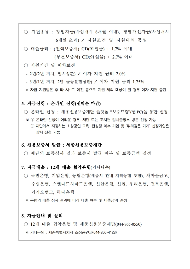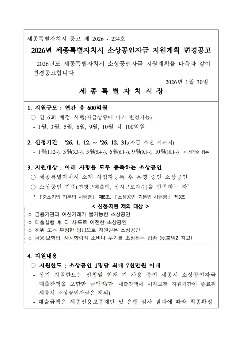 | 2026년 세종특별자치시 소상공인자금 지원계획 변경공고 |