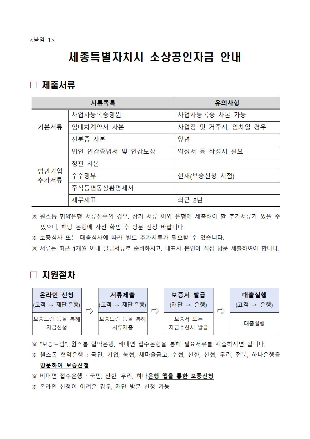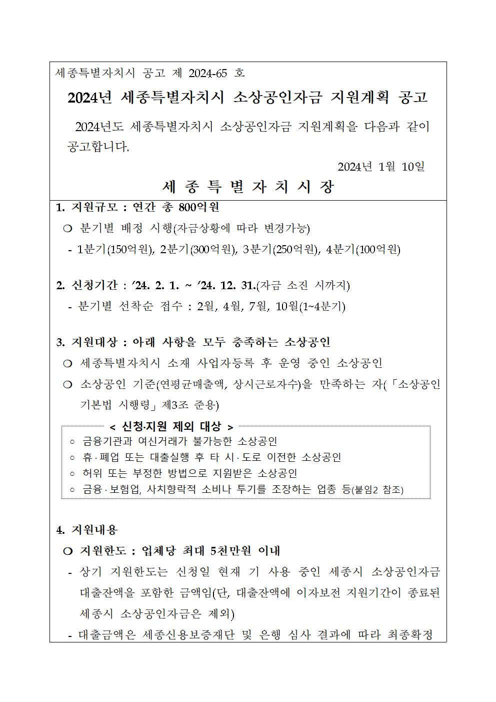 2024년 세종특별자치시 소상공인자금 지원계획 공고 |